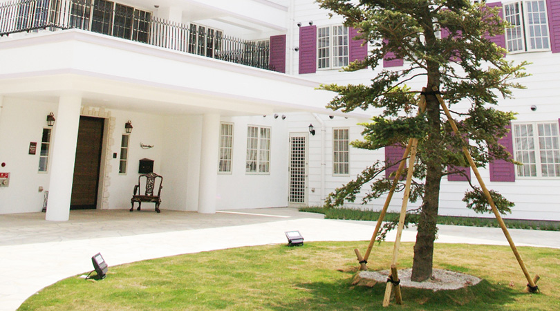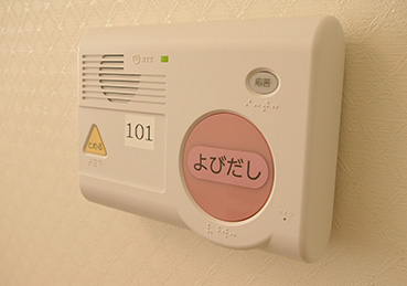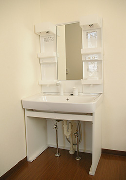 車椅子対応の洗面台を備えています。台の下が広く開いていますので、座って身支度やお化粧ができます。